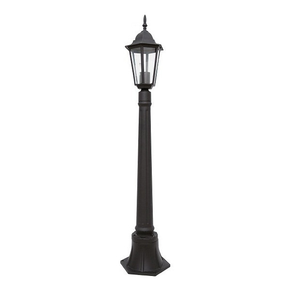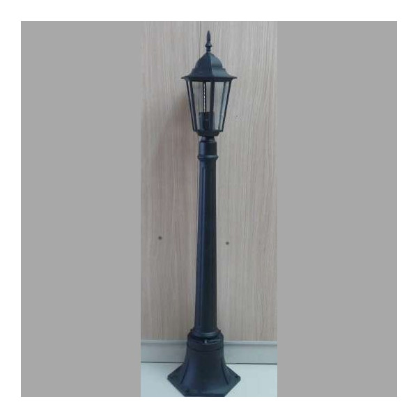 Fenjer stubni M2002-SV crni. Materijal: Legura aluminijuma (nerđajući) + staklo. Boja tela fenjera: Crna. Boja stakla: Transparentna. Visina: 111,5 cm. Prečnik: 20,5 cm. Prečnik dela za montažu: 11,5 cm. Grlo: 1 x E27. Snaga: 1 x max. 60W. Radni napon: 230V. IP zaštita: IP44 (za spoljašnju upotrebu). Sijalice uključene: NE. Težina: 1,6 kg.