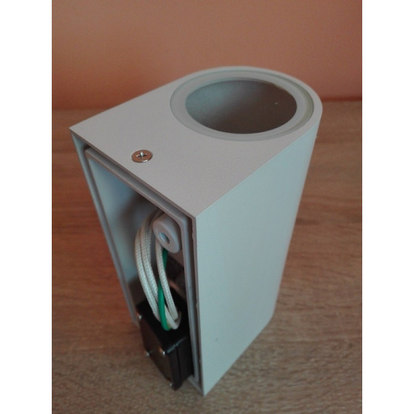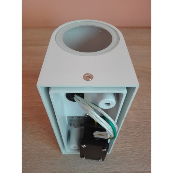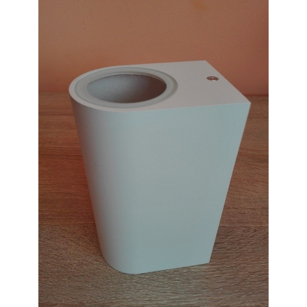 Baštenska zidna lampa WL7438 - zidna spoljna svetiljka. Brend: Optonica. Materijal: Aluminijum + staklo. Izvor svetla: 2 x GU10/max.35W. Napon: 220~240V / 50~60Hz. Dimenzije: 92mm x 68mm x 150mm. Boja osnove: Mat bela. IP zaštita: IP54 (vodootporna). Sijalice uključene u cenu: NE. Izvor svetlosti sa obe strane lampe. Lampa je masivna. Način montaže: Na zid (fasadna rasveta). Težina lampe: 550 g.