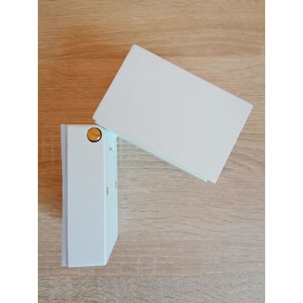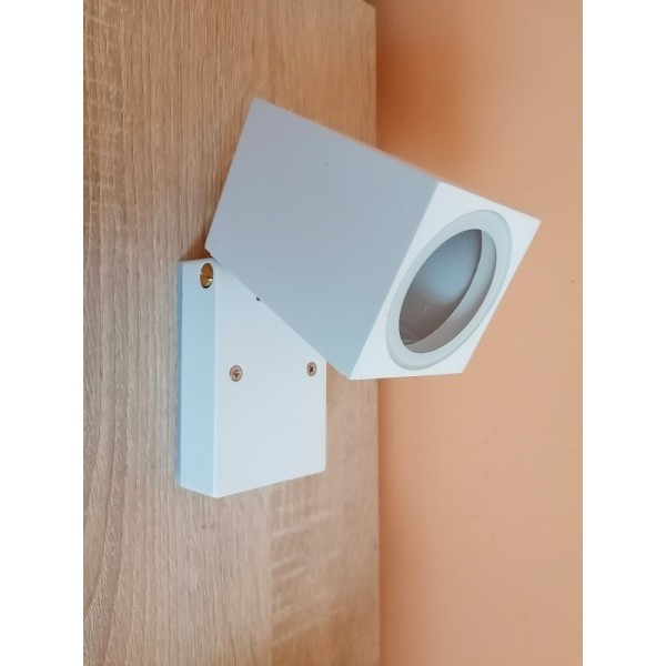 Baštenska zidna lampa pokretljiva WL7444 bela - spoljna zidna svetiljka. Brend: Optonica. Materijal: Aluminijum + staklo. Senilo lampe se može pokretati gore-dole, tako da se svetlost može usmeravati. Ugao pokretljivosti senila: max. 90 stepeni. Dimenzije senila (pokretnog dela): 63 mm x 98 mm x 63 mm. Dimenzije dela, koji se tipluje na zid: 64 mm x 100 mm x 30 mm. Dimenzije sklopljene lampe (kada je montirana na zid): 63mm x 98 mm x 96 mm. Izvor svetla: 1 x GU10/max.35W. Napon: 220~240V / 50~60Hz. Boja osnove: Bela. IP zaštita: IP44 (za spoljašnje uslove). Sijalice uključene: NE. Lampa je masivna. Težina: 440 g.