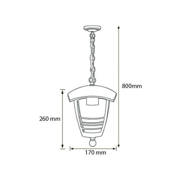 Fenjer viseći NAR-2 beli. Brend: Horoz. Materijal: Aluminijum + plastic. Materijal tela: Aluminijum. Materijal senila: Plastic. Difuzer je transparentan. Boja: Bela. Visina fenjera: 800 mm. Dimenzije senila: širina 170 mm x visina 260 mm. Grlo: 1 x E27. Snaga: 1 x 60W max. Radni napon: 220-240V/50-60Hz. IP zaštita: IP44 (vodootporan). Sijalice uključene: NE.