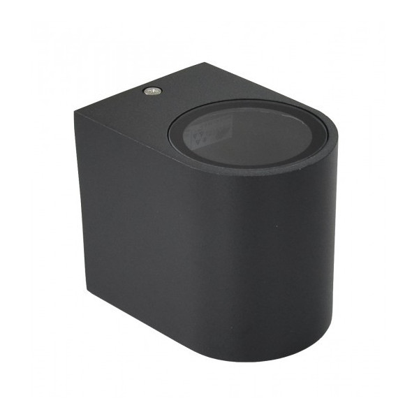 Baštenska zidna lampa 2xGU10 REGNUM-4 crna. Brend: Horoz electric. Materijal:Aluminijum + PC (polikarbonat). Materijal tela: Aluminijum. Materijal difuzora i proreza: PC (polikarbonat). Difuzori i prorezi na lampi su transparentni. Izvor svetla: 2 x Gu10 max 35W. Radni napon: 220-240V. Dimenzije: dužina 110 mm x širina 65 mm x visina lampe 215 mm. Boja osnove lampe: Crna. IP zaštita: IP44 (vodootporna). Način montaže: Na zid (fasadna rasveta). Isijavanje svetlosti: Naviše, naniže i kroz proreze na lampi. Sijalice uključene u cenu: NE.
