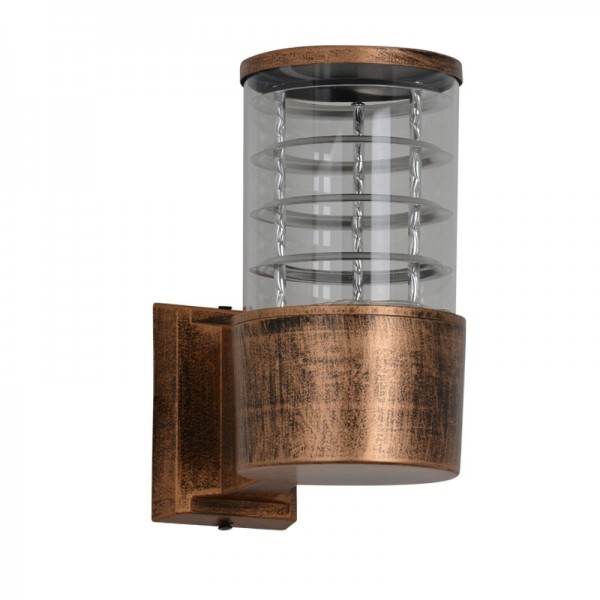 Baštenska zidna lampa 1xE27 ENEA-1 - zidna spoljna svetiljka. Brend: Megga. Materijal: Metal + PC. Materijal difuzora: PC (plastična masa). Boja difuzora: Transparentna. Visina stubne lampe: 210 mm. Prečnik senila: 100 mm. Udaljenost od zida: 165 mm. Dimenzije dela, koji se montira na zid: 100 mm x 75 mm. Grlo: 1 x E27. Snaga: 1 x max. 60W. Napon: 220-240V. Boja tela: Braon. Način montaže: Na zid. IP zaštita: IP54 (vodootporna). Sijalica uključena u cenu: NE. Težina: 550g.