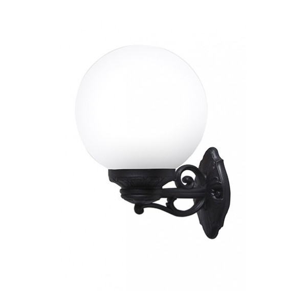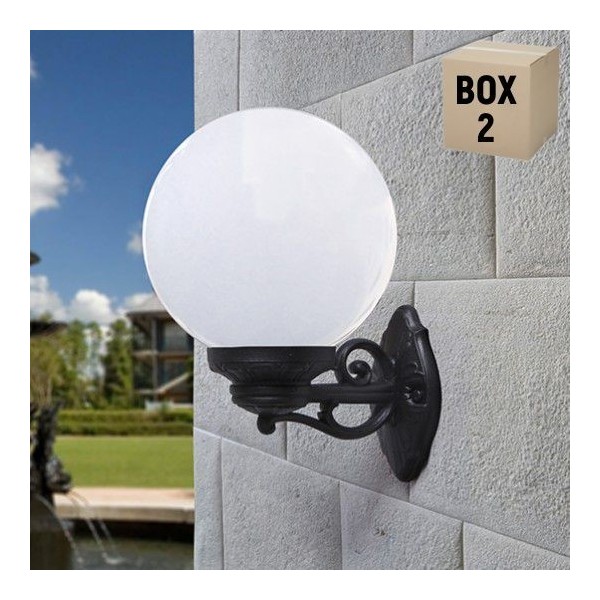 BISSO/G250 crna zidna lampa na gore/dole IP55. Brend: FUMAGALLI - Made in Italy. Dimenzije: Ø 250 mm x L 300 mm x H 360 mm. Osnovno pakovanje: 2 kom. Artikal: Zidna lampa. Tip grla: 1 x E27. Ready for LED: DA. Boja: Crna. Radni napon: 220~240V. Sij. uključene uz proizvod: NE. IP zaštita: IP55. Materijal: Resin (epoksidna smola). Materijal kugle: PMMA. Boja kugle: Opal bela. Stepen električne zaštite: II klasa. Temperatura okoline: -60~ +90 °C. Način montaže: Na zid. Dimabilnost: Ne. Kugla se može montirati i naniže. U proizvod staviti isključivo led sijalicu. Cena je iskazana za 2 komada.