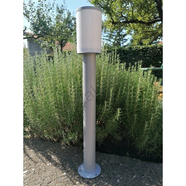 Baštenska stubna lampa 1xE27 siva. Brend: Svetlost. Artikal: Spoljna lampa. Materijal : Metalno telo lampe (plastificirano) + PVC (senilo). Visina lampe: 750 mm. Dimenzije senila: Prečnik 110 mm x visina 170 mm. Visina lampe: 600 mm. Prečnik postolja lampe: 120 mm. Prečnik stuba lampe: 60 mm. Boja tela lampe: Mat svetlo siva. Boja senila: Mlečno bela. Grlo: 1 x E27. Snaga: 1 x max 60W. Napon: 220-240V/50-60Hz. IP zaštita: IP44 (vodootporna). Lampa je masivna. Sijalica uključena u cenu: NE. Težina lampe: 2,4 kg.