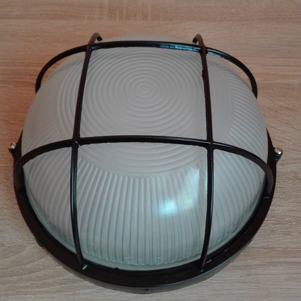 Brodska lampa M061. Materijal: Aluminijum + mat staklo. Staklo je masivno. Boja: Crna. Dimenzije: 213 x 107 x 100mm. Grlo E27, 1x60W max. Radni napon: 230V. Način montaže: Na plafon ili na zid. IP zaštita: IP54. Težina: 500g.