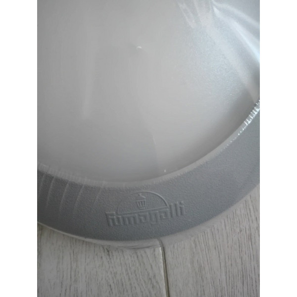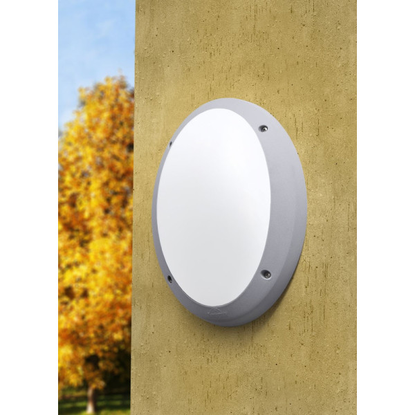 Baštenska spoljna lampa Fumagalli BERTA siva. Brend: FUMAGALLI - Made in Italy. Materijal: Resin + PMMA. Dimenzije: Ø275 x W80mm. Materijal tela lampe: Resin (epoksidna smola). Materijal difuzera na lampi: PMMA. Boja difuzera: Opal bela. Tip grla: 1 x E27. Boja: Siva. Radni napon: 220~240V. Izvor svetla: 1 x max.60W. Sijalice uključene uz proizvod: NE. Stepen električne zaštite: II klasa. Temperatura okoline: -60~ +90 °C. Način montaže: Na plafon ili na zid. Potvrda o usaglašenosti: AAA. Napravljena je od materijala otpornog na udarce, UV-zrake. Otporan na rđu i koroziju. Način montaže: Na zid ili na plafon. Klasa izolacije II. IP zaštita: IP66. U proizvod staviti isključivo led sijalicu.