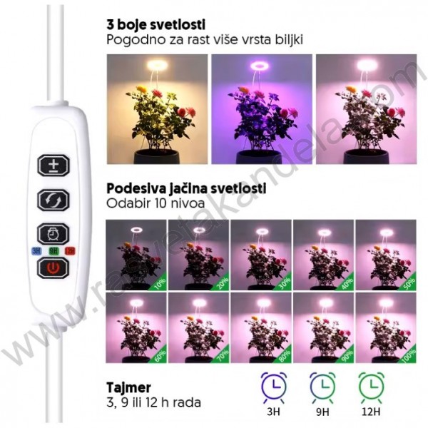 Tajmer omogućava precizno postavljanje svetlosti bez brige o isključivanju, dok 10 nivoa jačine omogućava da svaka biljka dobije upravo onoliko svetla koliko joj treba