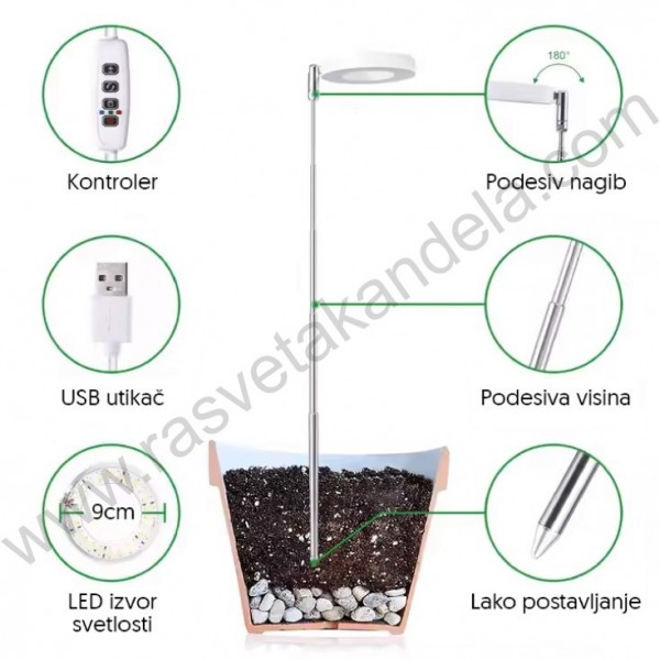 Ova lampa je dizajnirana da poboljša rast Vaših biljaka uz ugrađeno LED osvetljenje koje pruža optimalnu svetlost za svaku fazu rasta