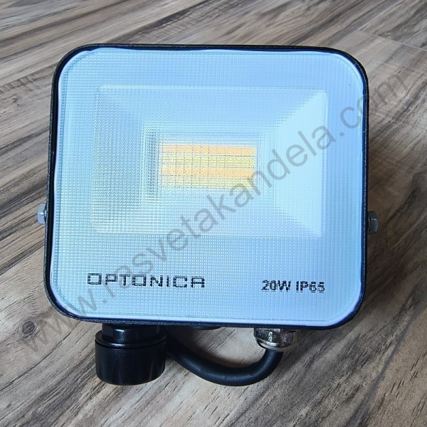 LED reflektor CCT 20W 3000/4500/6000K crni. Brend: Optonica. Radni napon: 180-265V/50-60Hz. Dimenzije: 121,7 mm x 121,8 mm x 26 mm. Boja:Crna. LED čip: SMD. Snaga: 20W. Ekvivalentna snaga: 130W. Potrošnja električne energije: 20 Kwh /1000h. Materijal: Aluminijum (Al). Lumen flux: 1800 (Lm). Temperatura boje svetlosti: 3000K (toplo bela)/4500K (prirodno bela)/6000 K (hladno bela). Ugao rasipanja svetlosti: 120º. Životni vek: 25000 h. Broj ON/OFF: 25000X. CRI - indeks reprodukcije boja: ≥80(Ra). Temperatura okoline: -20°C / +40°C. Pravilna montaža: Na plafon ili na zid. Energetska efikasnost: F. Dimabilnost: NE. Proizvod se prodaje bez senzora. Opciono: PIR senzor se kupuje zasebno i jednostavno se postavlja zavrtanjem u telo reflektora. Promena boje svetlosti se obavlja preko preklopnika na telu. IP zaštita: IP65 (vodootporan).