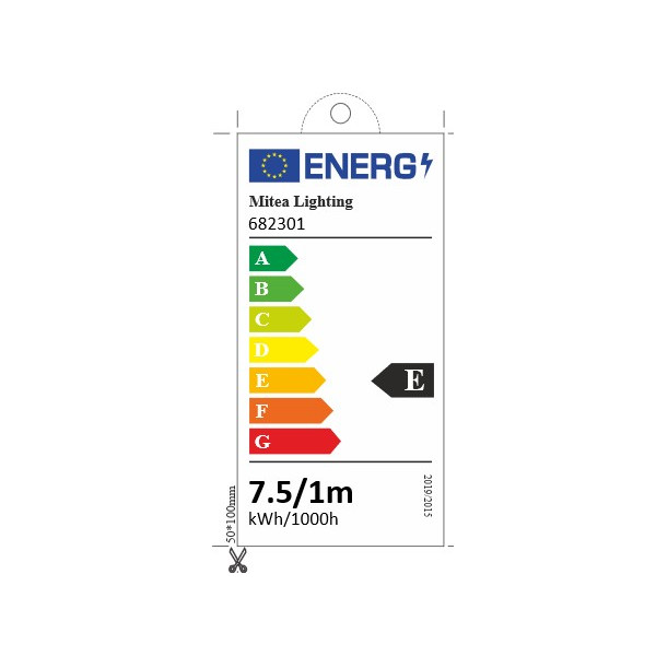 MLK-2835-288 COB SET sa priključkom 220V 7.5W 3000K 5m 288d IP65. Brend: Mitea lighting. Artikal: LED traka. LED: SMD. Radni napon: 220V. Snaga (procenjena): 7,5W /1m. Potrošnja elek. energije: 7,5/1m Kwh /1000h . Energetska efikasnost 2019/2015: F. Lumen flux (nom.): 600 (lm). Temp. boje svetl.: 3000 K (Toplo bela). Ugao rasipanja svetlosti (nom.): 120º. IP zaštita: IP65. Životni vek: 20.000 h na 25° C. Temperatura okoline: -20~ +50 °C. Dimabilnost: Ne. Broj dioda po metru: 288. Dužina segmenta: 500mm. Dužina trake: 5m.