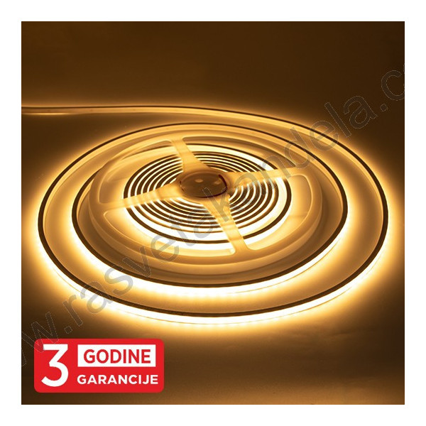 COB LED traka 3000K 10m 12V 10W/m 320d IP20 LTRCOB/320WW-12. Brend: Hennessy. Tip: LED traka. Napajanje: 12V DC. Snaga: 10 W. Tip diode: COB. Broj LED dioda: 320. Boja svetlosti: Toplo bela. Temperatura svetlosti: 3000 K. Jačina svetlosti: 900 lm. Širina trake: 8 mm. Ugao osvetljenja: 120°. Radna temperatura: -10 do +65°C. Dimabilnost: Da. IP zaštita: IP20. Izolacija: Ne. Ostale napomene: Funkcija LED trake se umanjuje montažom na stiropor ili drugi materijal koji nema sposobnost provođenja toplote.