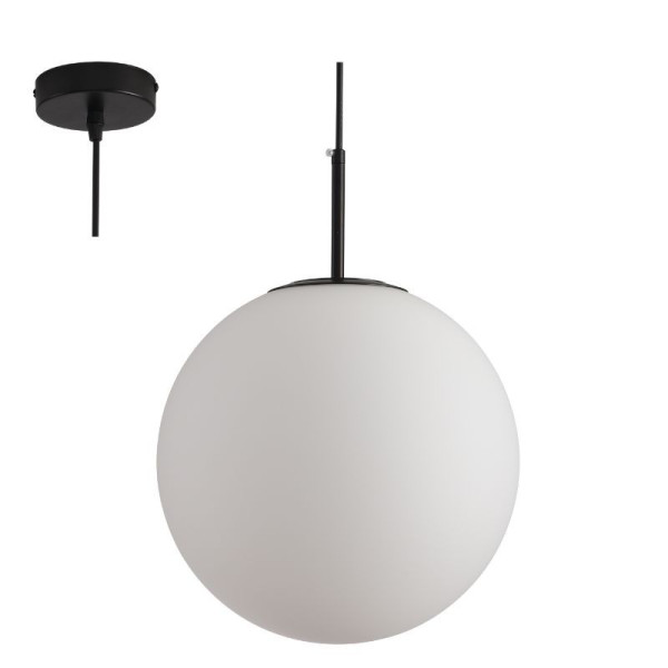 Visilica 1xE27 RONDO BK. Brend: Megga. Materijal: Metal + staklo. Materijal tela visilice: Metal. Boja tela i kabla: Crna. Boja staklene kugle: Mat bela. Materijal abažura: Staklo. Visina visilice se može podešavati. Dužina kabla: max.700 mm. Dimenzije staklene kugle: prečnik 300 mm x H300 mm. Visina metalnog dela, koji nosi staklenu kuglu: 200 mm. Visina visilice sa staklenim abažurom: Max. 1200 mm. Grlo: 1 x E 27. Snaga: 1 x max. 60W. Radni napon: 220-240V. Način montaže: Na plafon. IP zaštita: IP20. Sijalica nije uključena u cenu proizvoda. Namena: za dnevne sobe, za trpezarije, spavaće sobe. Takođe, veoma je atraktivna i za urbane prostorije, kao što su:restorani, hoteli, butici...