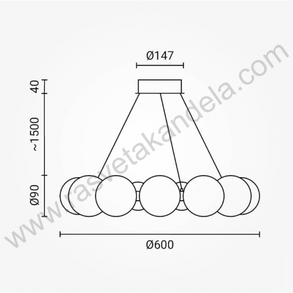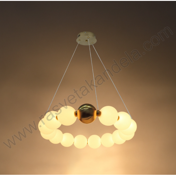 Led visilica je predstavljena u duhu elegancije. Izrađena je kombinacijom tela od aluminijuma i metala i PC kugli. Kugle su bele boje i isijavaju toplo belu boju svetlosti - 3000K. Ova boja svetlosti je najprijatnija ljudskom oku.