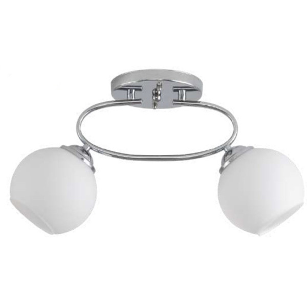 Luster plafonjera 2xE27 VIBIA-2 hrom. Brend: Megga. Materijal: Metal + staklo. Dužina lustera: 450 mm. Visina lustera: 300 mm. Grlo: 2 x E27. Snaga: 2 x max.40W. Radni napon: 220-240V/50-60Hz. Boja tela: Hrom - efekat ogledala. Boja stakla: Mat bela. Pakovano bez sijalice. IP zaštita: IP 20. Način montaže: Na plafon.