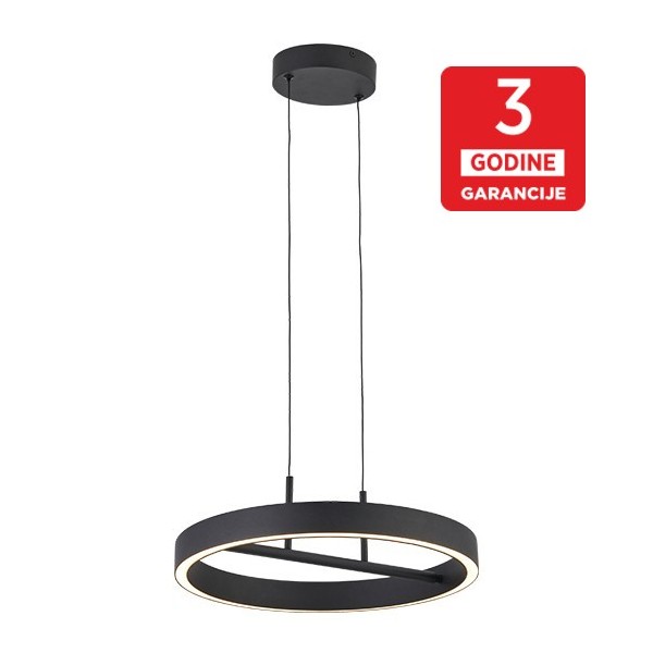 LED visilica M10945 32W 3000K peščano crna. Brend: Mitea lighting. Artikal: Viseća lampa. Dimenzije: prečnik 400 mm. LED: SMD. Boja: Peščano crna. Radni napon: 220~240V. Snaga (procenjena): 32W. Potrošnja elek. energije: 32 Kwh/ 1000h. Energetska efikasnost 2019/2015: G. Lumen flux (nom.): 2560 (lm). Temp. boje svetl.: 3000 K (Toplo bela). CRI - indeks reprodukcije boja: ≥80(Ra). IP zaštita: IP20. Stepen električne zaštite: I klasa. Životni vek: 25.000 h na 25° C. Temperatura okoline: -5~ +40 °C. Dužina kabla: 1m.