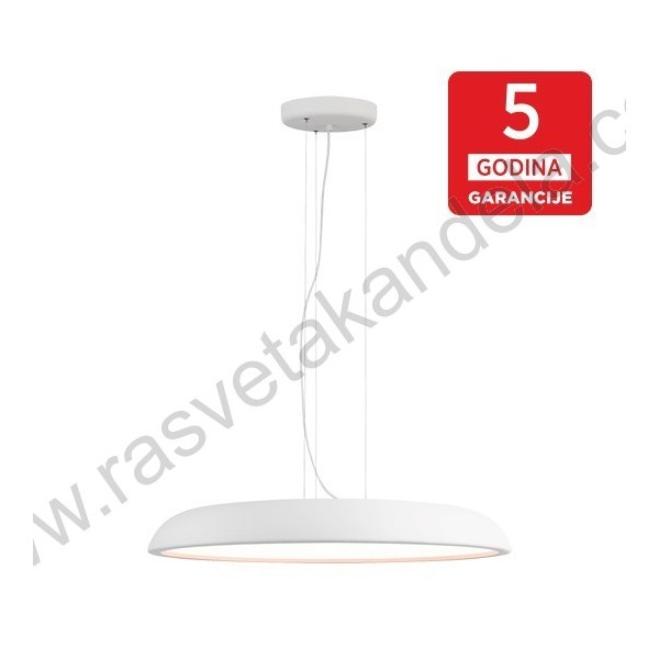 LED visilica ARCADIA 91W 3000K bela MPD750-800 W. Brend: Mitea lighting. Artikal: LED visilica. Dimenzije abažura: Ø800mm x 95mm. LED: SMD. Boja: Peskareno bela. Radni napon: 220~240V. Snaga (procenjena): 91W. Potrošnja elek. energije: 91 Kwh / 1000h. Energetska efikasnost 2019/2015: G. Lumen flux (nom.): 6600 (lm). Temp. boje svetl.: 3000K. CRI - indeks reprodukcije boja: ≥90(Ra). IP zaštita: IP20. Materijal: Aluminijum, čelik, PMMA. Stepen električne zaštite: I klasa. Način montaže: Na plafon. Dimabilnost: Ne. ON-OFF ciklus prekida: 15.000 X. Životni vek: 25.000 h na 25° C. Temperatura okoline: -5~ +40 °C. Garancija: 5 godina.