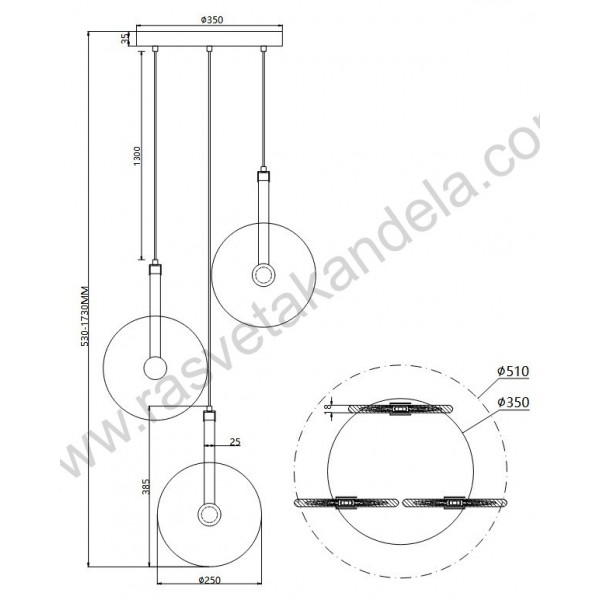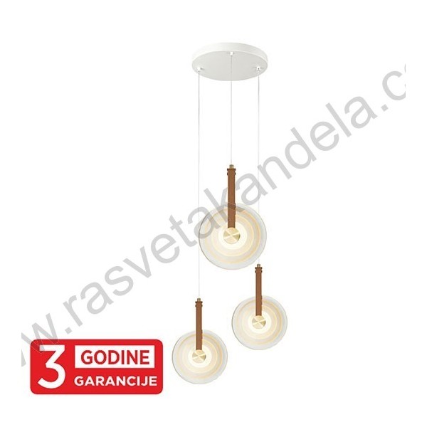 LED visilica 15W 3000K ALTO MAP9442-3 zlatna. Brend: Mitea lighting. Artikal: LED visilica. Dimenzije abažura: Ø250 mm. Visina visilice: Max. 1730 mm. Dimenzija dela, koji se montira na plafon: Ø350 mm. LED: SMD. Boja: Zlatna. Radni napon: 220~240V. Snaga (procenjena): 15W (3 x 5W). Potrošnja elek. energije: 15 Kwh / 1000h. Energetska efikasnost 2019/2015: F. Lumen flux (nom.): 1540 (lm). Temp. boje svetl.: 3000K (toplo bela). CRI - indeks reprodukcije boja: ≥80(Ra). IP zaštita: IP20. Materijal: Metal + staklo. Stepen električne zaštite: I klasa. Način montaže: Na plafon. Dimabilnost: Ne. ON-OFF ciklus prekida: 15.000 X. Garancija: 3 godina.