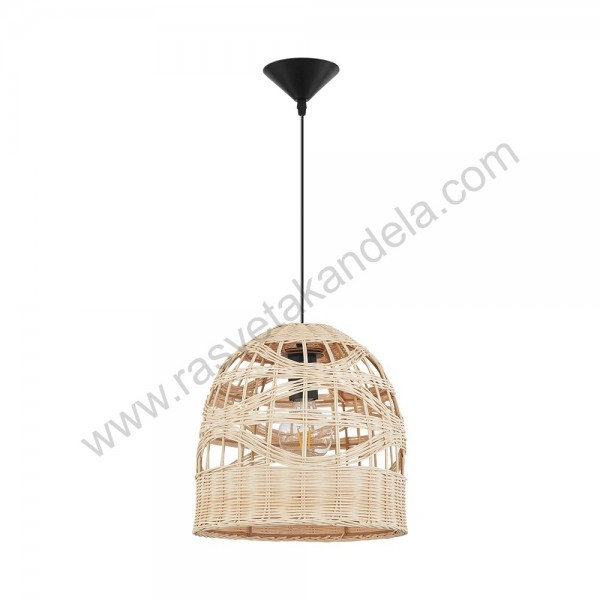 Ratan visilica 1xE27 BRY-D003R-1H. Brend: Braytron. Serija: Rattan. Materijal tela: Metal + ratan. Dimenzije abažura od ratana: Prečnik 300 mm x visina 300 mm. Visina: Max. 1950 mm. Prečnik dela, koji se montira na plafon: 110 mm. Visina visilice se može podešavati. Grlo: 1 x E27. Snaga: 1 x max. 23W. Radni napon: 220-240V. Način montaže: Na plafon. Električna klasa: I. IP zaštita: IP20. Sijalica nije uključena u cenu proizvoda. Težina visilice: 900g. Namena: za dnevnu sobu, za trpezarije iznad trpezarijskog stola, za spavaće sobe. Takođe, veoma je atraktivna i za urbane prostorije, kao što su: kafići, restorani, butici, brvnare...