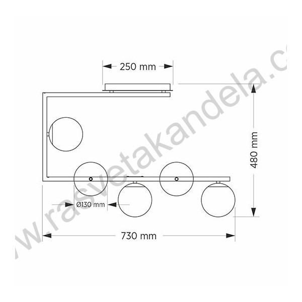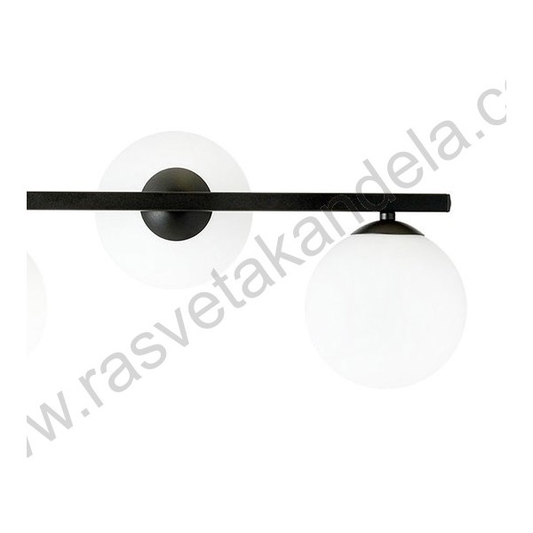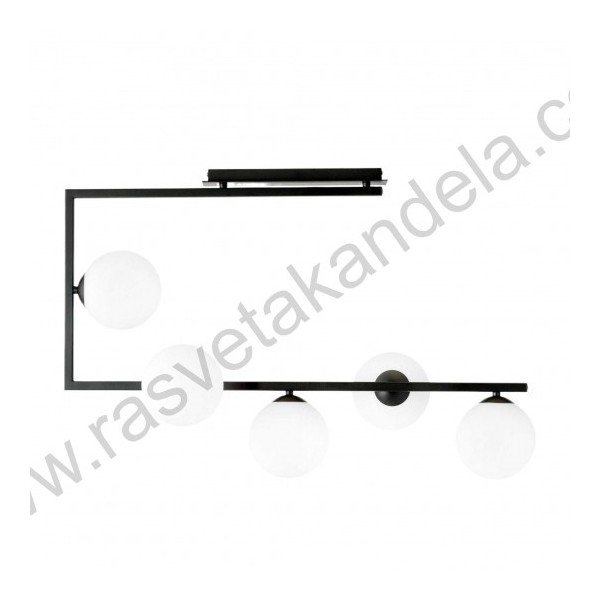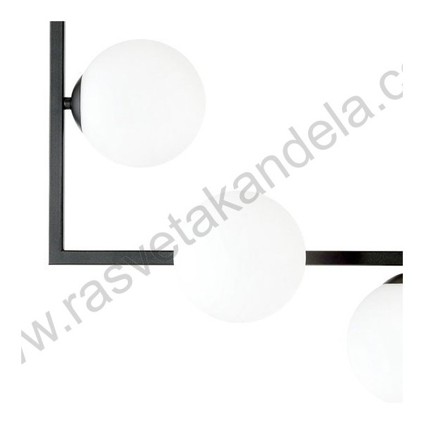 Luster 5xE27 M10771-5 crni. Brend: Mitea lighting. Materijal: Metal + staklo. Prečnik dela, koji se montira na plafon: 250 mm. Prečnik kugle: 130 mm. Dimenzije: Dužina 730 x šrina 270 mm x visina 480 mm. Materijal tela: Metal. Boja tela lustera: Crna. Materijal kugli: Staklo. Boja stakla: Bela. Grlo: 5 x E27. Snaga: 5 x max. 60W. Radni napon: 220-240V. IP zaštita: IP20. Klasa električne zaštite: I. Način montaže: Na plafon. Sijalice uključene: NE. Težina: 2,8 kg.