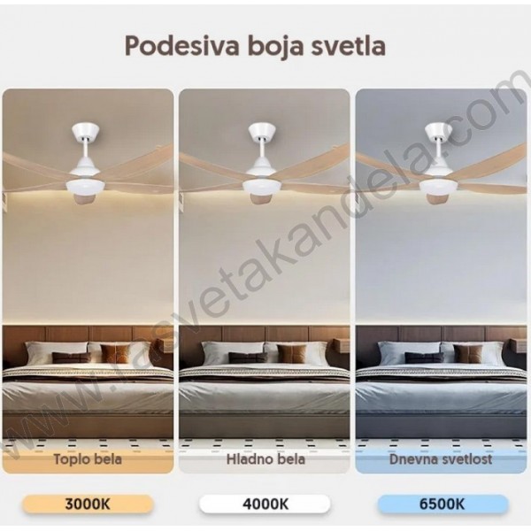 Ventilator ima i ugrađeno LED osvetljenje, sa mogućnošću izbora temperature svetla 3000K, 4000K i 6500K, što omogućava da se ambijent prilagodi različitim navikama i delovima dana.