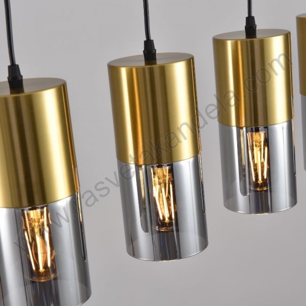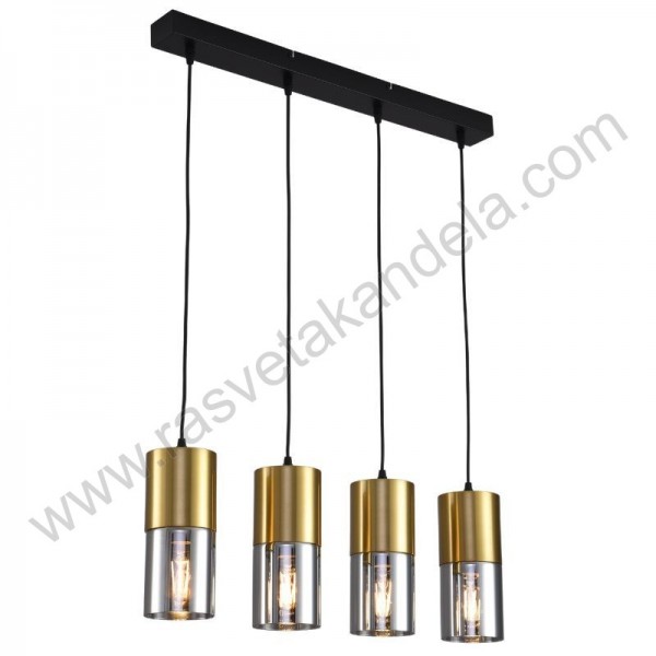 Visilica 4xE27 TRIX-4L zlatna+smoky - metal/staklo. Brend: Megga. Materijal: Metal + staklo. Materijal dela, koji se montira na plafon: Metal. Boja stakla: Smoky (dim boja). Boja tela: Crna+zlatna. Visina visilice se može podešavati. Boja kabla: Crna. Dužina kablova: Max.900 mm. Svi kablovi su iste dužine. Grlo: 4xE27. Snaga: 4 x max. 40W. Radni napon: 220-240V. Način montaže: Na plafon. IP zaštita: IP20. Sijalice nisu uključene u cenu proizvoda. Namena: za dnevne sobe, za trpezarije, spavaće sobe. Takođe, veoma je atraktivna i za urbane prostorije, kao što su:kafići, restorani, hoteli, butici...