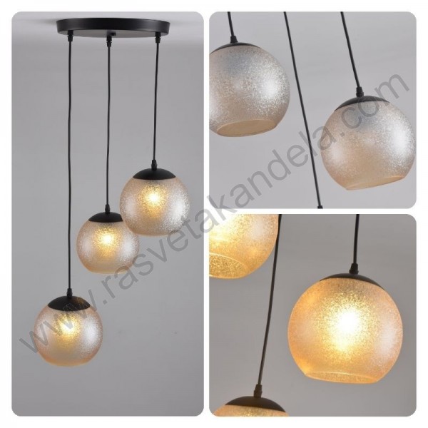 Visilica 3xE27 BELIZA-3R amber staklo. Brend: Megga. Materijal: Metal + staklo. Materijal dela, koji se montira na plafon: Metal. Materijal kugle: Staklo. Boja stakla: Amber. Karakteristika stakla: Uključenjem sijalica, staklo proprima amber boju, isključenjem sijalica - boja stakla je siva. Boja tela: Crna. Visina visilice se može podešavati. Prečnik dela, koji se montira na plafon: 300 mm. Boja kabla: Crna. Dužina kablova: Max.900 mm. Svi kablovi su iste dužine. Grlo: 3xE27. Snaga: 3 x max. 40W. Radni napon: 220-240V. Način montaže: Na plafon. IP zaštita: IP20. Sijalice nisu uključene u cenu proizvoda. Boja stakla na visilici se razlikuje u trenutku kada je visilica uključena i kada je isključena. Namena: za dnevne sobe, za trpezarije, spavaće sobe. Takođe, veoma je atraktivna i za urbane prostorije, kao što su:kafići, restorani, hoteli, butici...