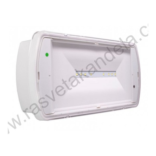 Panik lampa LED 100lm SL2MNM65D3C3A IP65. Brend: Eaton. Dimenzije: 270 x 50 x 120mm. Ugradna dimenzija: 250 x 100mm. Boja: Bela Radni napon: 220~240V Lumen flux (nom.): 100 (lm) IP zaštita: IP65. Materijal: PC (Polikarbonat) Način montaže: Na plafon ili na zid Kapacitet baterije: 3,6V 1700mAh Vreme rada baterije: 3h Dimabilnost: Ne Daljina uočavanja: 20m Lampa može biti nadgradna ili ugradna (uz pomoć kutije za ugradnju).