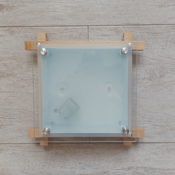 Drvena plafonjera 31cmx31cm 1xE27 233-S svetlo drvo. Brend: Svetlost. Rustična serija. Materijal: Metal + staklo + drvo. Dimenzije drvenog rama: 310 mm x 310 mm. Visina plafonjere: 70 mm. Debljina drvene gredice: 15 mm. Boja drvenog rama: Svetla braon. Osnova plafonjere metalna sa rupičastim dizajnom. Boja stakla: Mat bela. Grlo porcelansko: 1 x E27. Snaga: 1 x max. 60W. Oblik plafonjere: Kvadrat. Boja elemenata, koji su pričvršćeni drveni ramovi i staklo: Mat hrom. Materijal unutrašnjosti plafonjere: Metal u beloj boji. Radni napon: 220-240 V. IP zaštita: IP20. Način montaže: Na plafon ili na zid. Veoma masivna plafonjera. Osnovne karakteristike lampe su visok kvalitet u izradi i masivnost. Težina plafonjere: 1,6 kg.