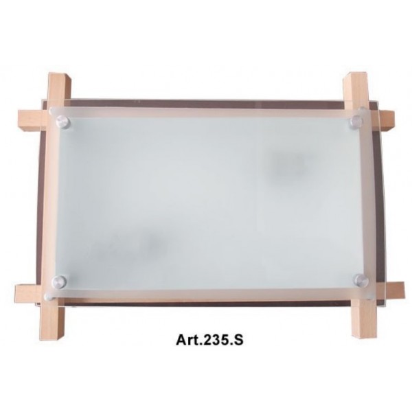 Drvena plafonjera 46cmx31cm 2xE27 235-S svetlo drvo. Brend: Svetlost. Rustična serija. Materijal: Metal + staklo + drvo. Dimenzije plafonjere: 460 mm x 310 mm. Boja drvenog rama: Svetla braon. Osnova lampe je metalna. Boja stakla: Mlečno bela. Grlo porcelansko: 2 x E27. Snaga: 2 x max. 60W. Visina plafonjere: 70 mm. Boja elemenata, koji su pričvršćeni drveni ramovi i staklo: Mat hrom. Radni napon: 220-240 V. IP zaštita: IP20. Oblik: Pravougaonik. Način montaže: Na plafon. Veoma masivna plafonjera. Osnovne karakteristike lampe su visok kvalitet izrade i masivnost.