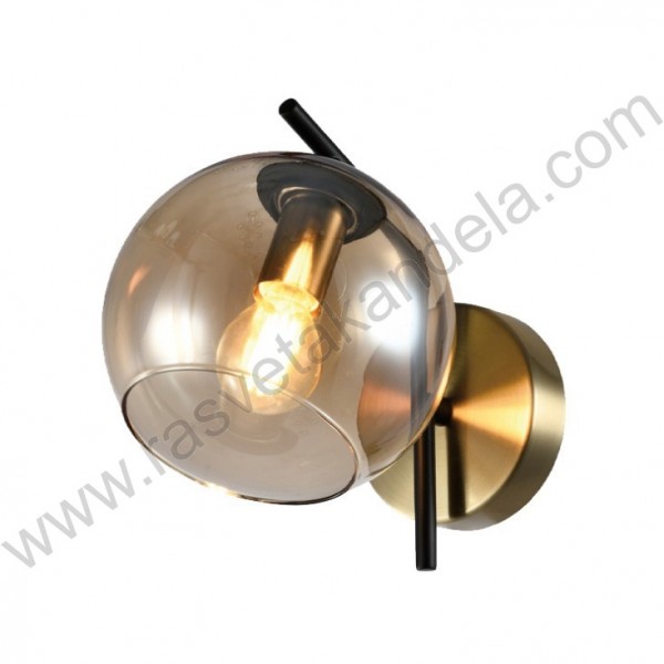 Zidna lampa TALIA29. Brend: BB Link doo. Materijal tela: Aluminijum. Boja tela: Crno-zlatna.. Boja kugle: Amber. Grlo: 1 x E14. Snaga: 1 x max. 40W. Radni napon: 220-240V. IP zaštita: IP20 (za unutrašnju upotrebu). Način montaže: Na zid. Sijalice uključene u cenu: NE.