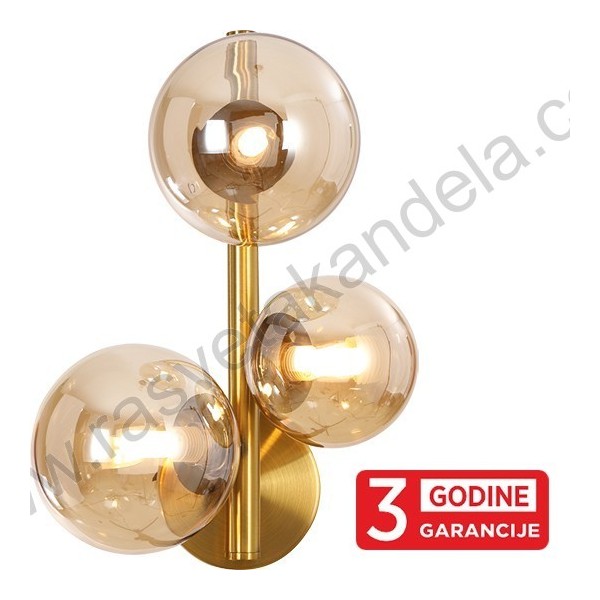 Zidna lampa 3xG9 GLOBE MAW9225-3 staro zlato+amber sa prekidačem