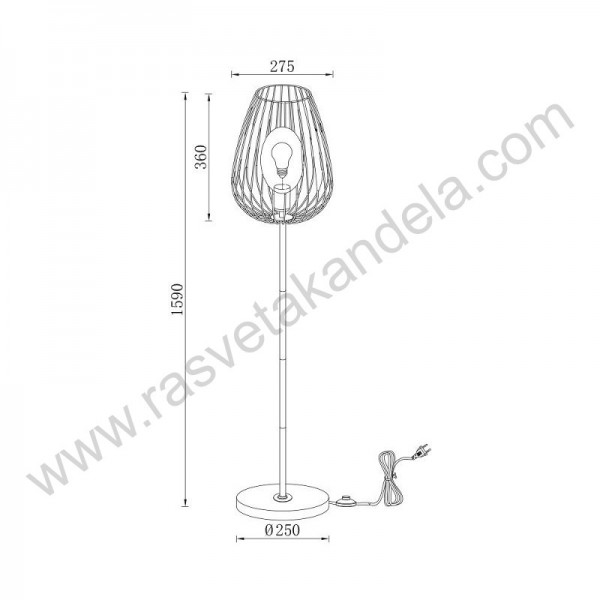 Podna lampa 1xE27 crna BRY-W005T-1H. Brend: Braytron. Serija: Wiring. Materijal: Metal. Visina lampe: 1590 mm. Prečnik abažura: 275 mm. Visina abažura: 360 mm. Prečnik postolja: 250 mm. Tip grla: 1 x E27. Boja: Crna. Radni napon: 220~240V. Izvor svetla: 1 x max.23W. Sij. uključene uz proizvod: NE. IP zaštita: IP20. Stepen električne zaštite: I klasa. Način montaže: Na pod. Prekidač ON-OFF: Da, nagazni. Težina: 4,1 kg.