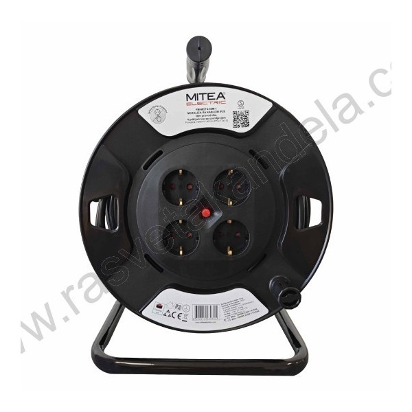 Produžni kabl na motalici 15m 1.5mm2. Brend: MITEA Electric. Boja: Crno-crvena. Radni napon: 250V. Snaga (procenjena): utičnice 3000W. Broj utičnica: 4. IP zaštita: IP20. Materijal: Plastika + metal. Stepen električne zaštite: I klasa. Nazivna struja: 13 In(A). Temperatura okoline: -5 +45 stepeni. Dužina kabla: 15m. Provodnik: H05VV-F 3G1.5 (PP/J-Y 3X1.5) mm. Tip zaštite: Zaštita od dodira.