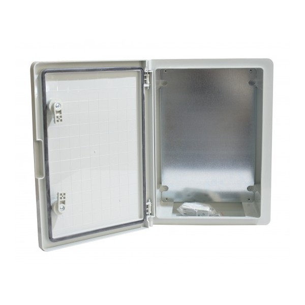 Razvodni orman ABS ME-OT 350 x 500 x 220mm IP65. Brend: Mitea lighting. Dimenzije: dužina: 350mm x visina: 500mm x širina: 220mm. Boja: Siva transparentna. IP zaštita: IP65. Materijal: ABS (Akrilonitril butadien stiren). Materijal kućišta: HB ABS halogen free vrata. Materijal bravice: PVC (Polivinil hlorid). Materijal montažne ploče: Galvanizovani čelik. Temperatura okoline: -25~ +50 °C. Način montaže: Na zid. Izdržljivost na udar: IK 08. Nazivni izolacioni napon: Ui 660 V.