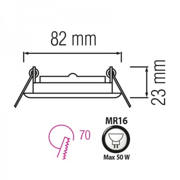 Rozetna - ugradna OT5070 - okrugla ugradna svetiljka. Brend: Optonika. Boja tela: Bela sjajna. Materijal:Metal. Izvor svetla: MR16 1xGU10/GU5.3 (pakovana bez grla). Dimenzije: Ø80 x 29 mm. Ugradne dimenzije : Ø70 mm. Stepen zaštite: IP 20. Težina: 85 g.