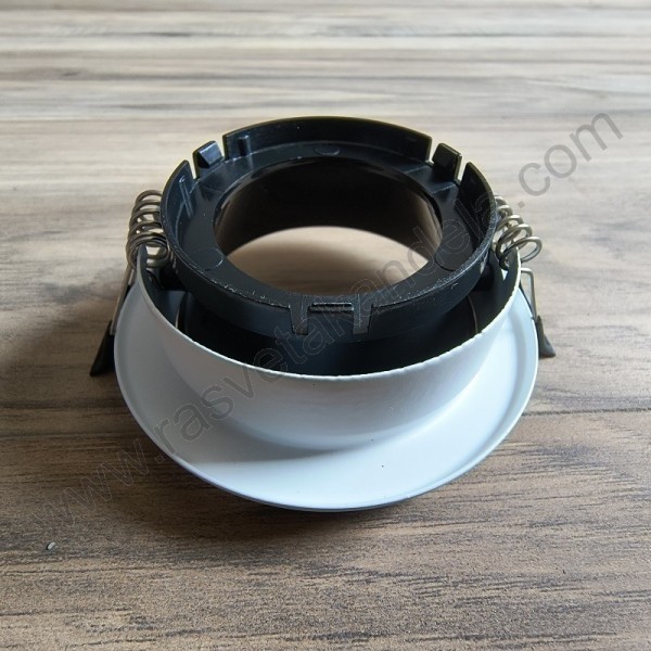 Rozetna M206004 aluminijum bela (video prezentacija montaže). Brend: Mitea lighting. Materijal: Aluminijum. Boja tela: bela. Izvor svetla: GU5.3 MR16 max. 1x50W ili LED. Radni napon: 12V - 230V. Dimenzije: Ø 68 mm x H: 72 mm. Dimenzije za otvor: Ø60 mm. Sijalično grlo GU5,3 u kompletu. IP zaštita: IP20. Težina: 105 g.