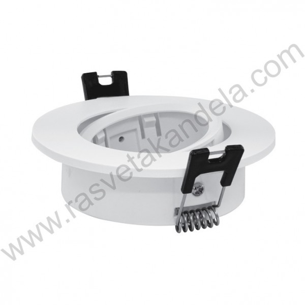 Rozetna usmeriva bela + GU10 grlo - R-A101/W. Brend: PROSTO. Boja tela: Bela. Materijal: ABS. Rozetna je usmeriva. Ugao okretanja: +- 30 stepeni. Napon:maks. 250V. Grlo: GU10, maks. 50W, dužina kabla 12cm. Prečnik rozetne: 90 mm. Dimenzija za bušenje: 75-80 mm. Dužina štipaljki: 27 mm. IP zaštita: IP20 (za unutrašnju upotrebu). Stepen električne zaštite: II klasa. Težina: 30 g. Izvor svetla nije u sklopu. Idealna je za kuhinje, dnevne boravke, trpezarije, galerije, butike, hodnike, restorane....