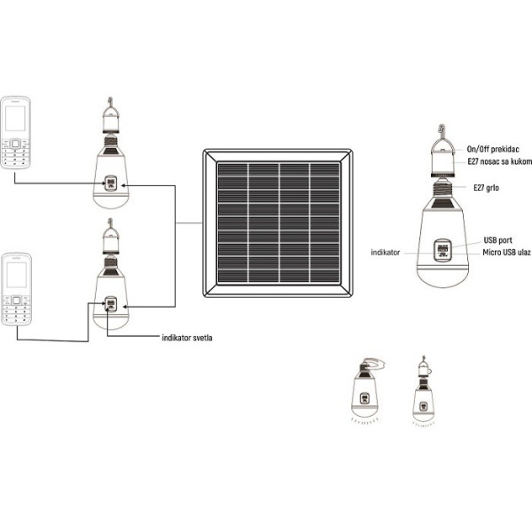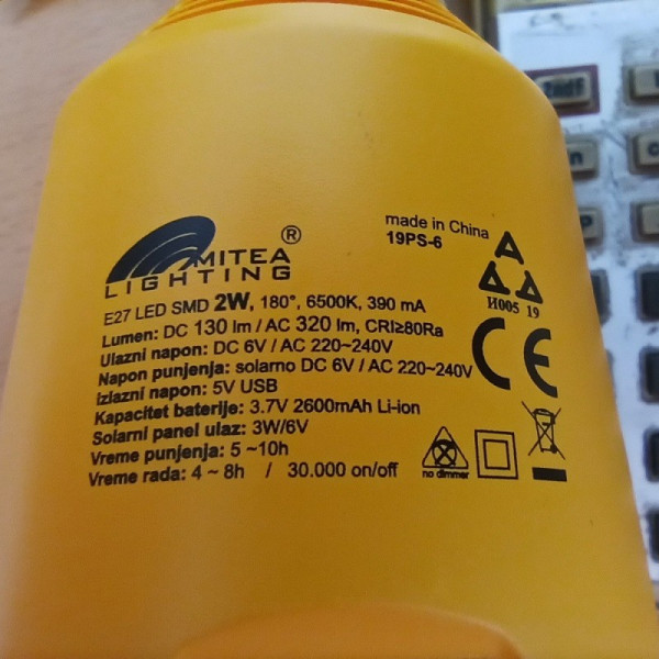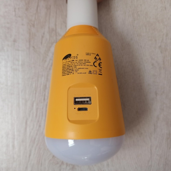 4. Može se puniti preko solarnog panela ili pomoću AC priljkička (preko E27 grla).