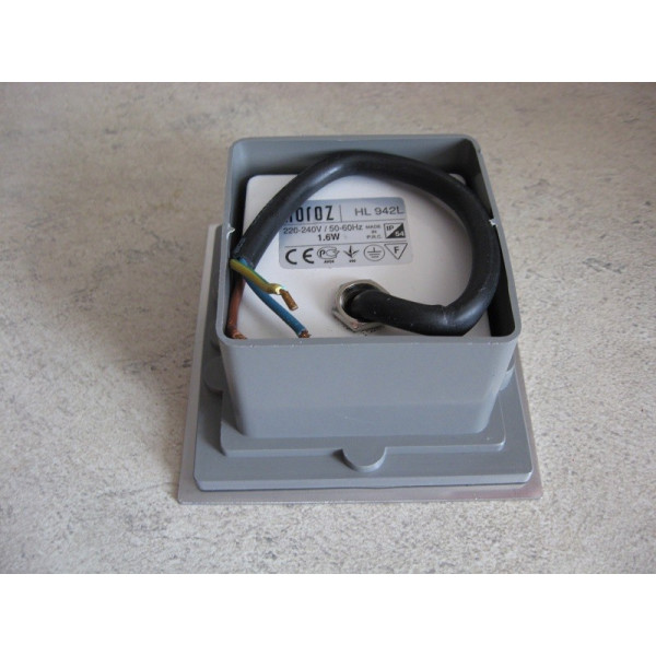 Spoljna ugradna LED lampa HL942L MERCAN. Brend: Horoz Electric. Snaga: 3W. Boja svetlosti: 6400K (hladno bela). Materijal: Aluminijum+nerđajući čelik. Izvor svetla: SMD LED. Potrošnja električne energije: 3kWh/1000h. Energetska efikasnost: A do A++. Osvetljaj: 147 Lm. Napon: 220-240V. Dimenzije: 105x105x58mm. Ugradna dimenzija: 70x70mm. Boja osnove lampe: mat hrom. Radni vek: 50.000h. Način montaže: U zid (fasadna rasveta). IP zaštita:IP54.