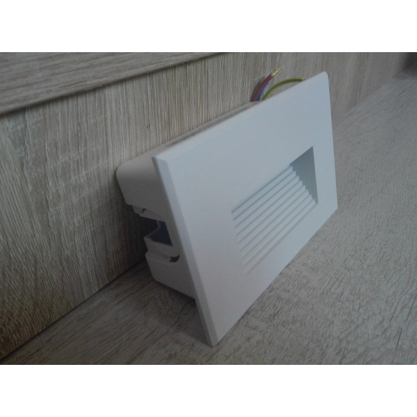 Spoljna ugradna LED lampa M953011 3W 4000K bela. Brend: Mitea lighting. Materijal: Aluminium + PC + Staklo. Dimenzije lampe: 120 x 80 x 50mm. Dimenzije za otvor: 110 x 70mm. Artikal: Ugradna lampa. LED: SMD 2835. Boja: Bela. Radni napon: 200-240V. Snaga (procenjena): 3W. Potrošnja električne energije: 3kWh/1000h. Energetska efikasnost: F. Lumen flux (nom.): 110 (lm). Temp. boje svetlosti: 4000 K. IP zaštita: IP65 (vodootporna). Stepen električne zaštite: II klasa. Način montaže: Ugradna, u zid. Poseduje integrisan izvor svetlosti. Težina: 200 g.