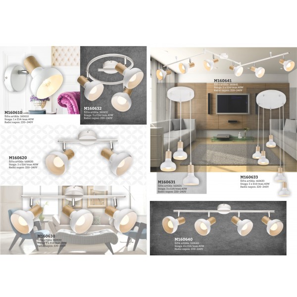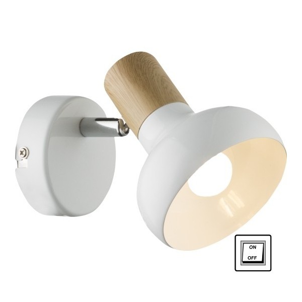 Spot lampa M160610 P bela. Brend: Mitea Lighting. Materijal: Metal. Boja: Bela sa hrom elementima. Boja abažura: kombinacija bele boje i boje drveta. Prečnik abažura: 100mm. Dužina abažura: 110mm. Prečnik dela, koji se tipluje na zid: 80mm. Koristiti sijalicu max. dužine 70 mm. Radni napon: 220~240V. Tip grla: E14. Broj grla: 1. Prekidač ON/OFF: Da, na telu lampe. Izvor svetla: 1 x max.40W. IP zaštita: IP20. Stepen električne zaštite: I klasa. Način montaže: Na plafon ili zid. Težina: 400 g.