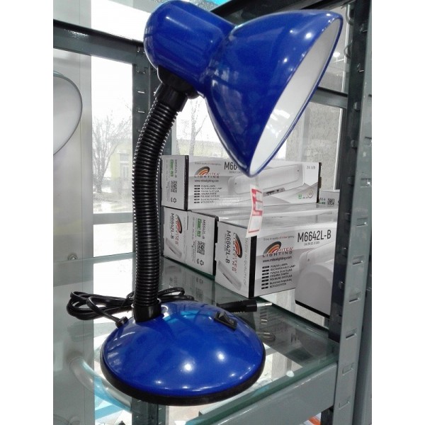 Stona radna lampa M1050 plava. MMaterijal: Metal. Materijal abažura i postolja: Metal. Materijal vrata lampe: PVC (plastična masa). Boja: Plava. Boja unutrašnjosti abažura: Bela. Visina lampe: Max. 355 mm. Prečnik abažura: 125 mm. Dužina abažura: 140 mm. Prečnik postolja: 145 mm. Boja vrata lampe: Crna. Vrat lampe je fleksibilan. Prekidač ON/OFF: DA, na postolju lampe. Radni napon: 220-240V/50-60Hz. Grlo: 1 x E27. Snaga: 1 x max. 40W. Temperatura okoline: 0 ~ +40°C. Stepen zaštite: IP 20. Dimabilnost: NE. Sijalice uključene u cenu: NE. Način montaže: Na sto. Lampa poseduje stabilno postolje. Kabl dužine 1,45m. Težina lampe: 1 kg.