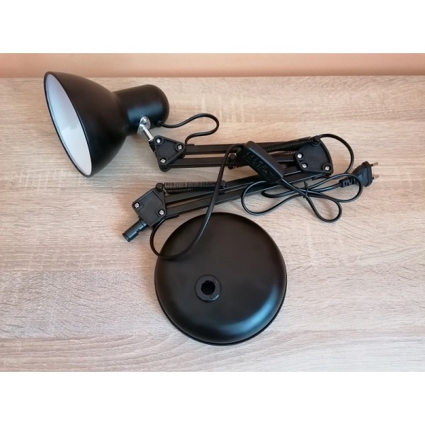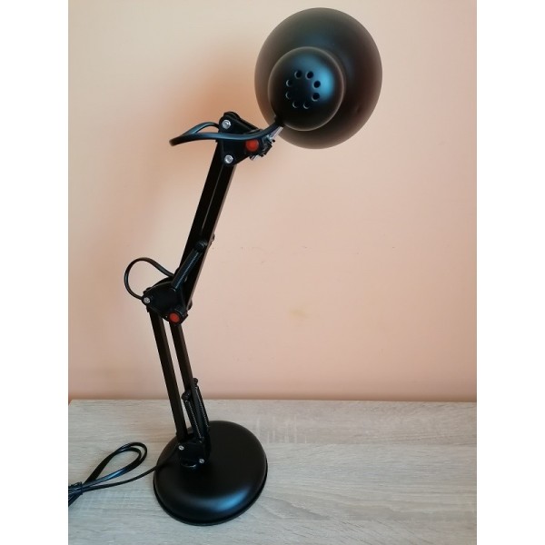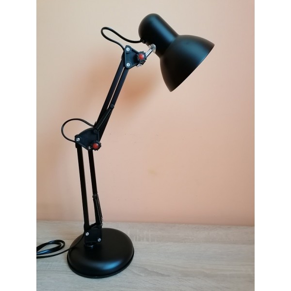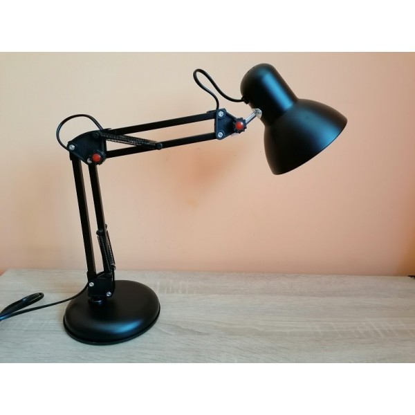 Stona radna lampa MTL2001 E27 crna. Brend: Megga. Materijal: Metal. Abažur, zlobni delovi i postolje su od metala. Visina lampe: Max. 530 mm. Dimenzije abažura: prečnik 125mm x dužina 140mm. Unutrašnjost abažura je bele boje. Lampa poseduje 2 zgloba. Dužine zglobnih delova: 250mm i 225 mm. Abažur pokretan: Može se rotirati 360 stepeni i pokretati gore-dole. Prečnik postolja: 153 mm. Dužina kabla: 1000 mm. Prekidač ON/OFF: DA, na telu lampe. Boja tela: Crna. Grlo keramičko: 1 x E27. Snaga: 1 x max. 40W. Lampa je zglobna, tako da se svetlost može usmeravati. Zglobni delovi i abažur su pokretni. Radni napon: 220-240V. Način montaže na sto. Postolje je jako i stabilno. Težina postolja: 740g. Boja kabla: Crna. Dužina kabla: 1050 mm. Prekidač ON/OFF: DA, na kablu. IP zaštita: IP20. Lampa je pakovana bez sijalice. Težina lampe: 1,3kg. Uz ovu lampu možete poručiti i kombatibilnu stegu za sto. Pogledajte detalje u više informacija.