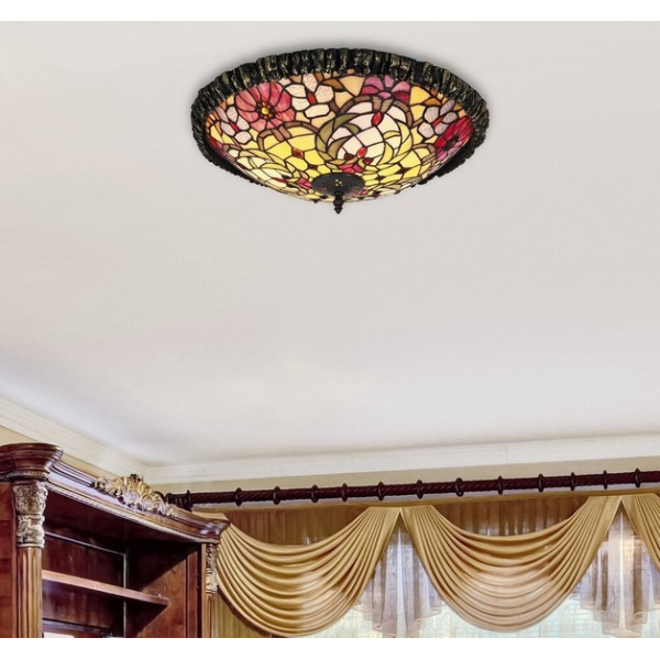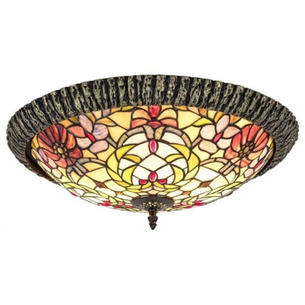 Tifani plafonjera 2xE27 MIRELLA 8087. Brend: Rabalux. Serija: Mirella. Materijal : Metal + masivno tiffany staklo. Staklo je višebojno. Prečnik plafonjere: 44 cm. Visina plafonjere: 16 cm. Grlo: 2 x E27. Snaga: 2 x max. 60W. Radni napon: 230V. Pakovana je bez sijalice. IP zaštita: IP20. Način montaže: Na plafon. Neto težina: 5 kg. Bruto težina: 6,2 kg. Osnovna odlika lampe: Visok kvalitet izrade i masivnost.