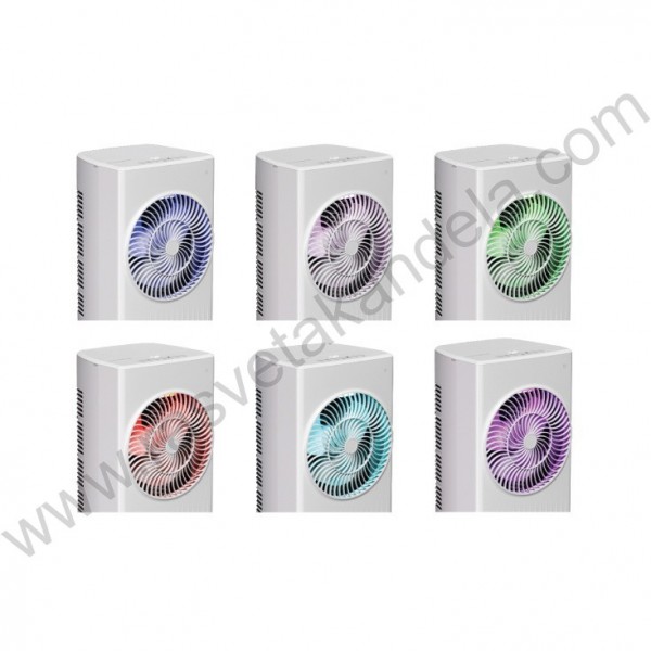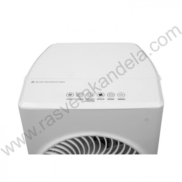 Idealan za osvežavanje prostora tokom toplih dana. Modernog, kompaktnog dizajna i bele boje uklapa se u svaki eneterijer. Ugrađeno ambijentalno osvetljenje omogućava da menjate boju po želji. Uređaj kombinuje funkcije ventilatora, isparivača i jonizatora za maksimalnu udobnost i kvalitet vazduha. Tri brzine ventilatora, promenim na taster SPEED. Tri režima rada: OL-normalan režim, AL-prirodni vetar, SP-režim za spavanje. Podesiva putem tastera MODE. Pritiskom na taster SWING aktivira se oscilacija koja omogućuje ravnomernu distribuciju vazduha levo i desno. Kada u uređaju ima dovoljno vode moguće je aktivirati funkciju isparivača. Ugrađen tajmer koji je podesiv u intervalima 1-12h. Lako ga je kontrolisati pomoću daljinskog upravljača. LED prikaz trenutnog režima rada. RGB osvetljenje.