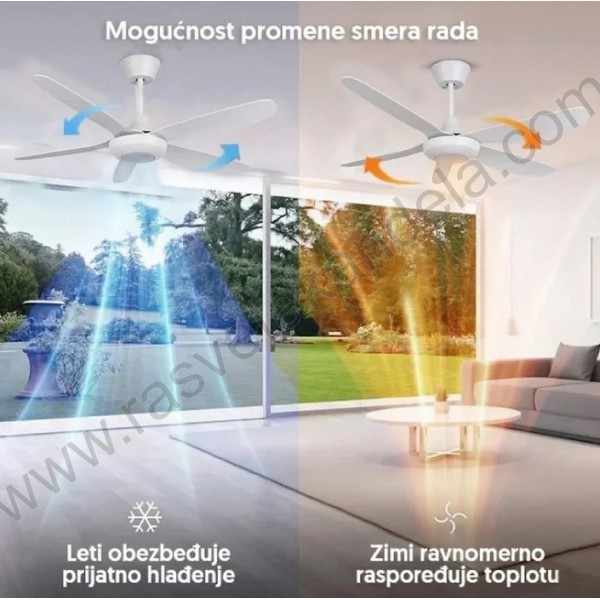 Može da radi i u obrnutom smeru, što je korisno zimi - tada potiskuje topli vazduh nadole i pomaže da se prostorija ravnomerno zagreje.